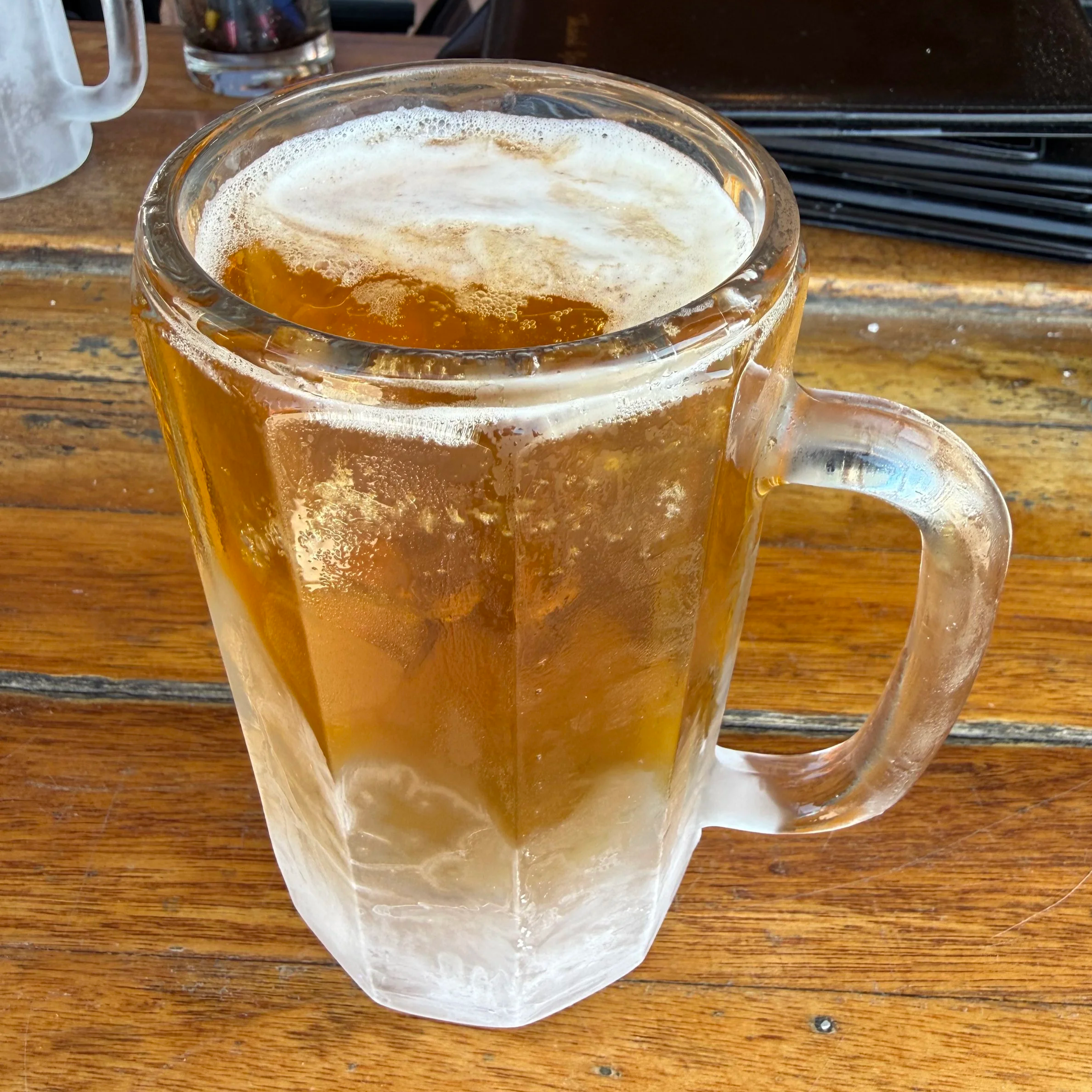 Next up was the Rusty Nail, which has brought back its iconic beer mugs, which fell by the wayside during COVID. Those mugs are stored in a freezer, which explains what happened next. When bartender Corey Bailey poured a Kona Big Wave, the temperature was 36F, but that wasn’t the end of it. As I held the thermometer for five seconds, it went down to 34F.