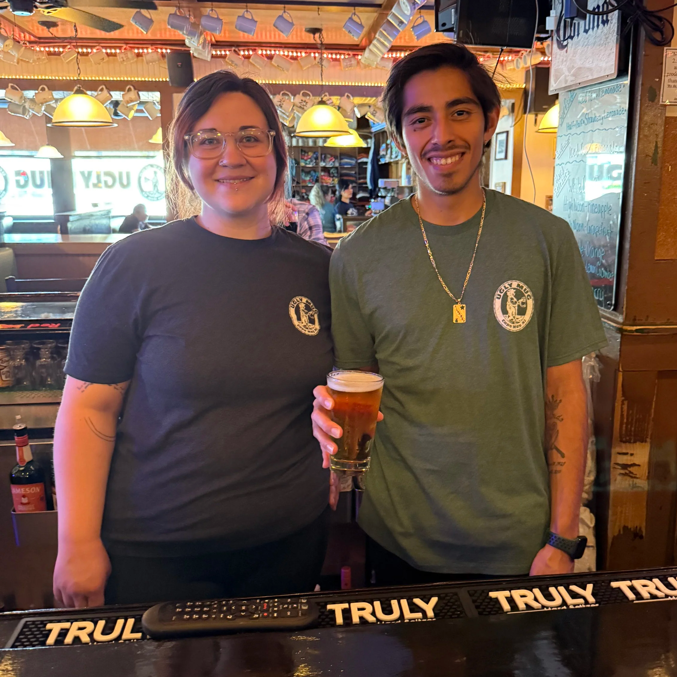 Bartenders Emily Richardson and Marco Quiroz at the Ugly Mug... temperature of 35.