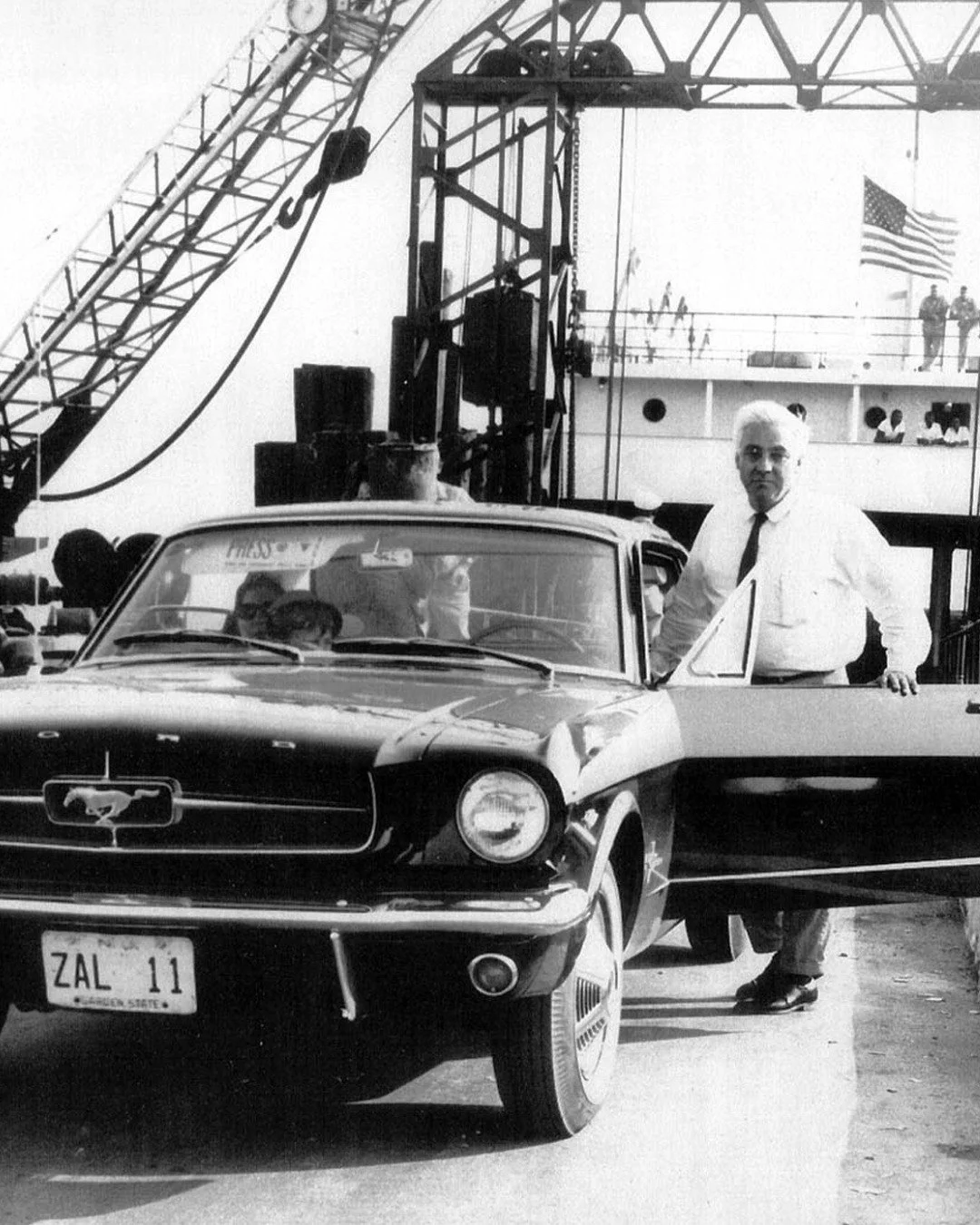 TV performer and poet Andrea Lippi was the first customer to board the ferry in his black Mustang.